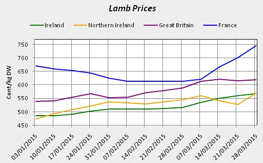 It says early season spring lamb was making around €6.50/kg. Prices paid for culled ewes were making between €3.20/kg and €3.30/kg.