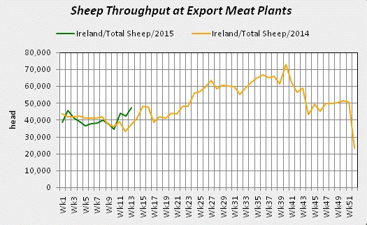 Supplies at sheep export meat plants for the week ending March 28 stood at around 47,000 head which was significantly higher than the corresponding week in 2014.