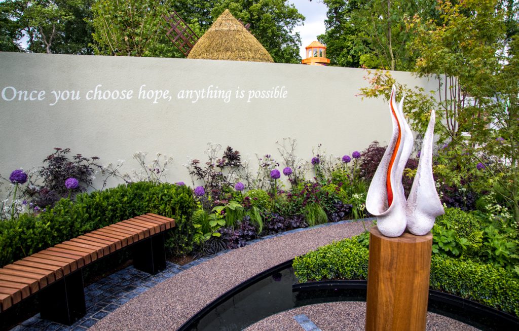 The quotes on the wall, according to one of the designers, Louise Jones, were supplied by the suicide charity. The design of the garden has dark colours along the outside but light, sunny colours in the centre, symbolising the ‘darkness into light’ theme.