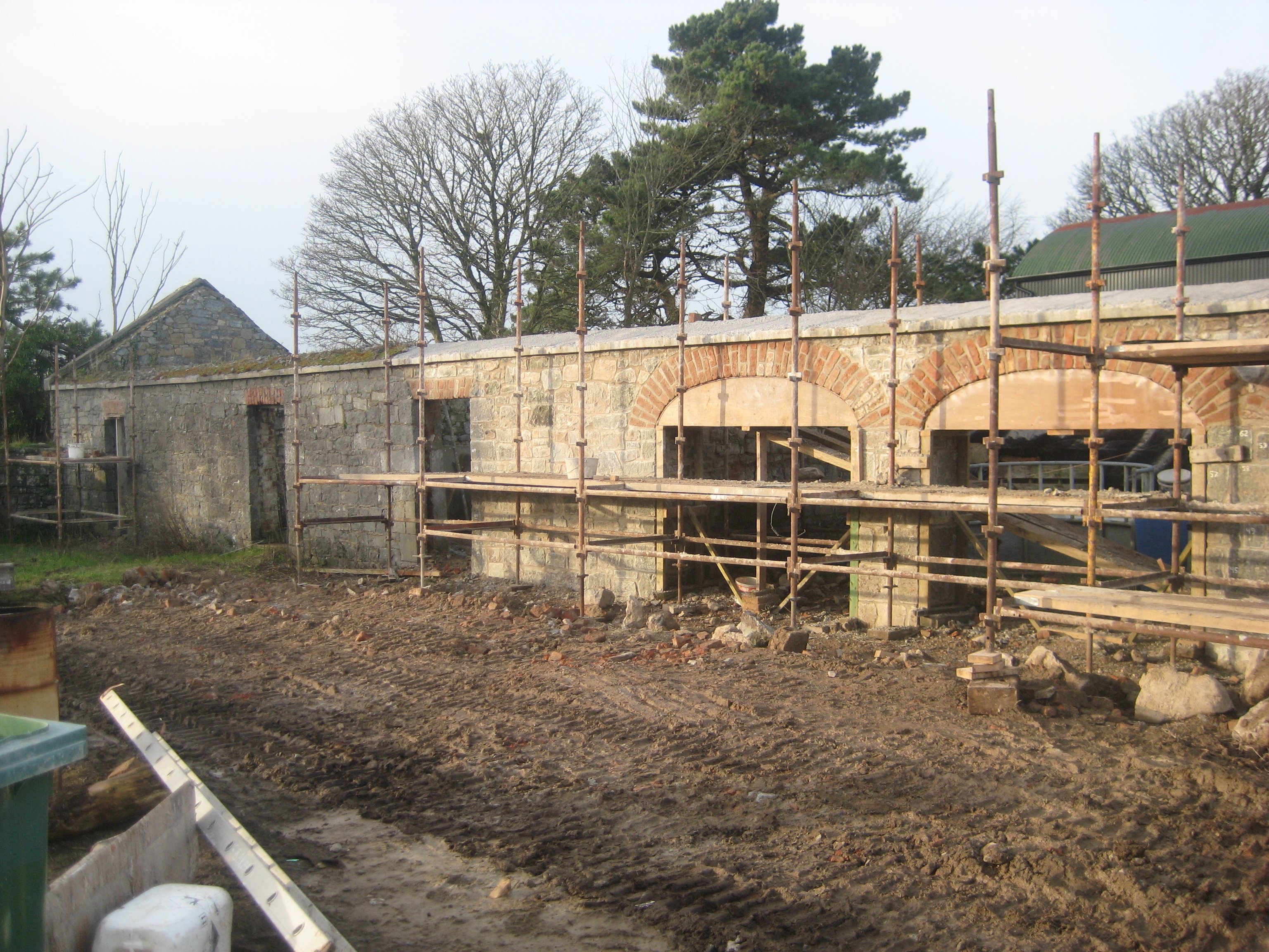 “The shed that we are restoring can be described as a long limestone coach house style building with brick arched openings and sheds that would have been used for carriages and farm animals.