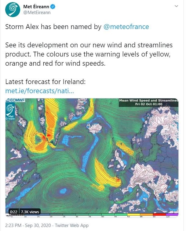Met Éireann has advised: “Storm Alex and associated lows and fronts are forecast to bring wet and windy weather across France, Britain and Ireland over the rest of the week.”