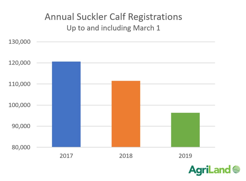 Moving to the overall picture in 2019, some 96,351 calves have been registered to suckler cows up to and including the week ending March 1.