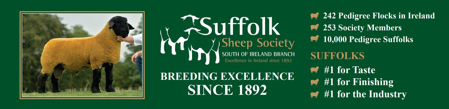 The Suffolk Sheep Society has been a major contributor to the sheep industry in Ireland for over 125 years, with Henry Strevens from Athleague in Co. Roscommon the first recorded Irish member of the Suffolk Sheep Society.