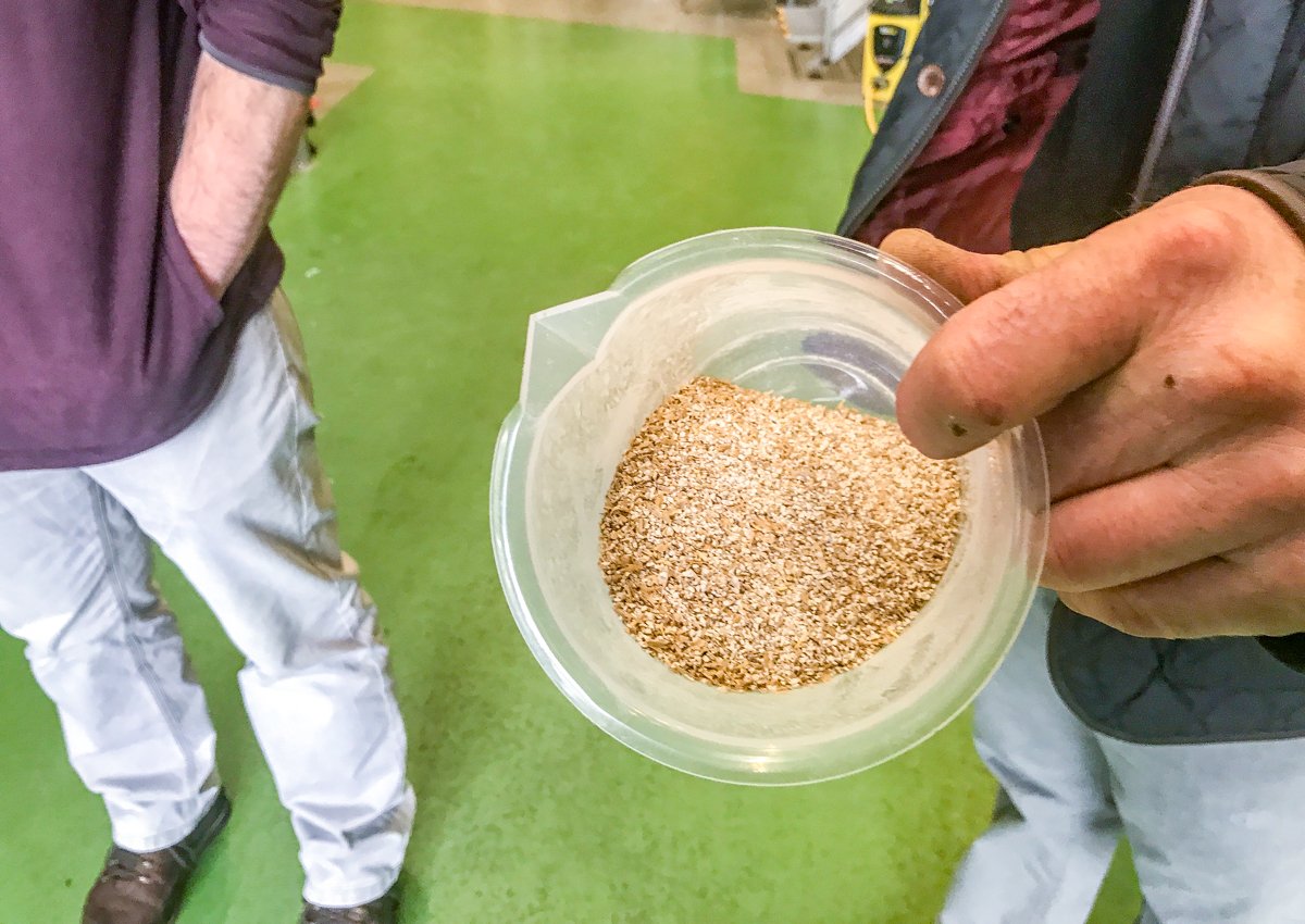 Once in the lauter tun, the porridge-like brew goes through a sieve. The sieve works out the turbidity and, when the liquid is bright enough, it will move across to the fermenter.