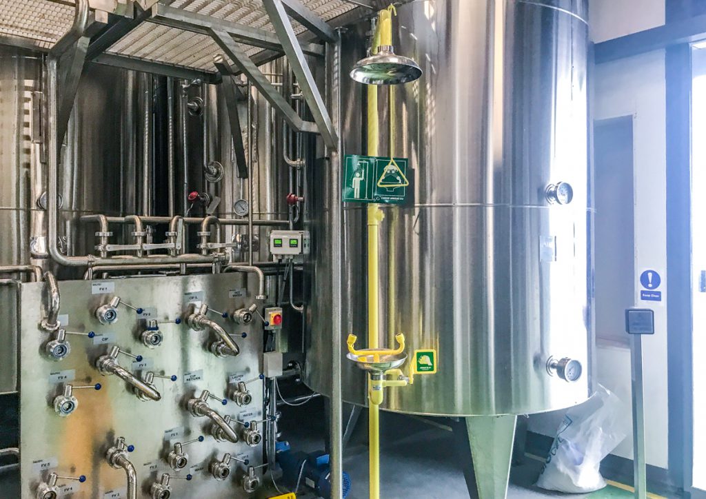 There are five fermenters at the distillery – each one with a capacity of 4,700L.