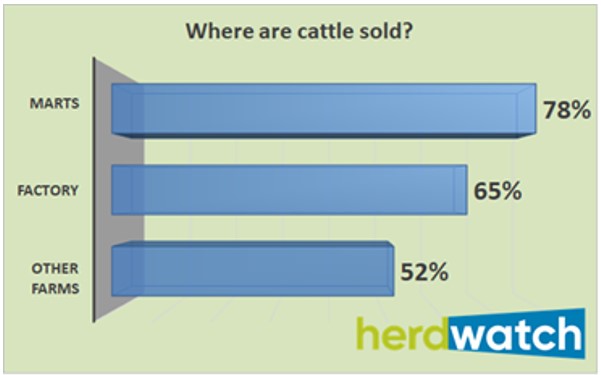 However, the Herdwatch survey suggests that the mart is the most popular outlet for trading animals followed closely by factories and other farms.