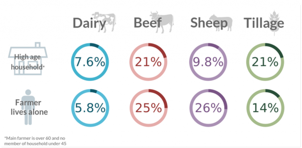 These indicators highlight where farmers could be at risk of isolation or – where the age of farm families is high – indicate where arranging farm succession might be an issue.
