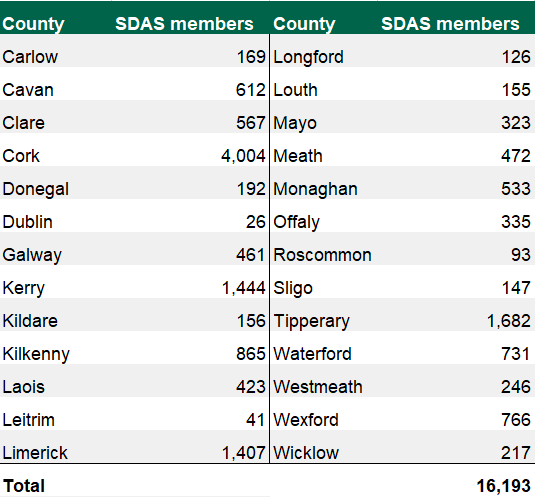 A county-by-county breakdown of participating farms under the Sustainable Dairy Assurance Scheme (SDAS) has shown a broad range in figures.