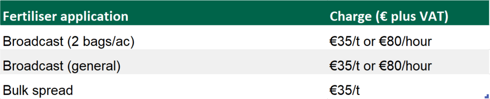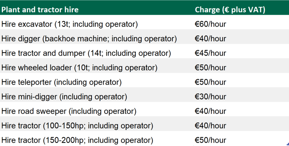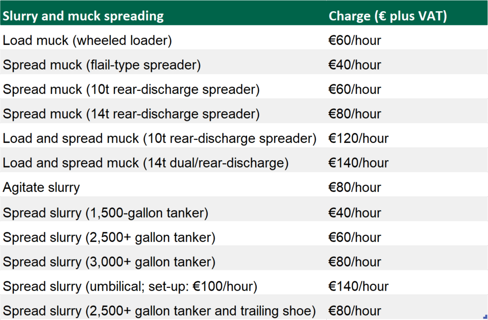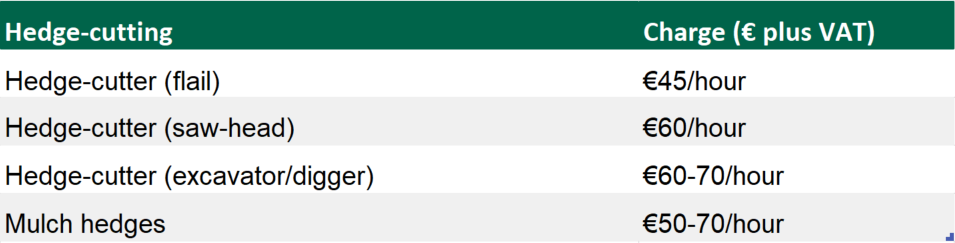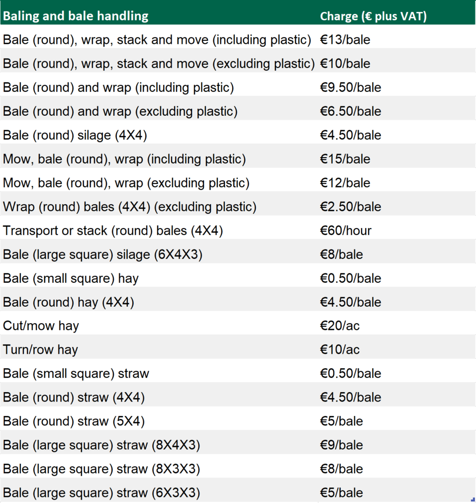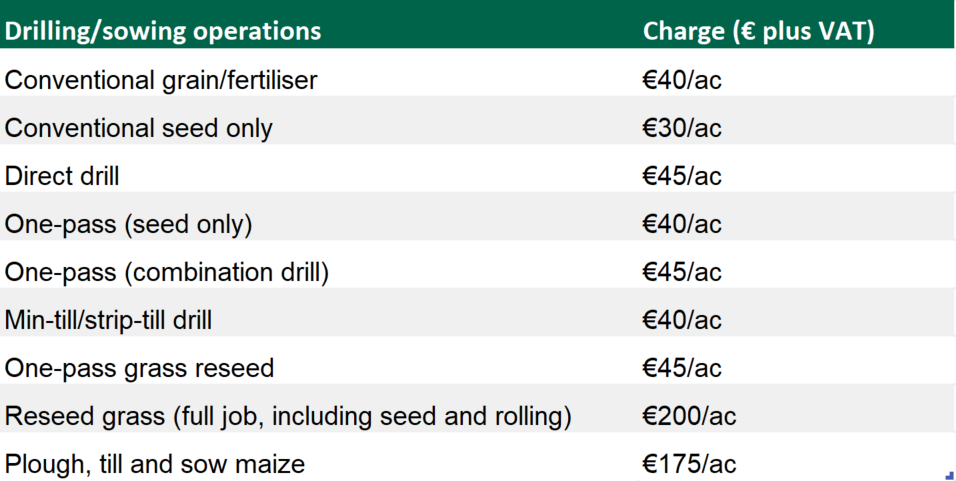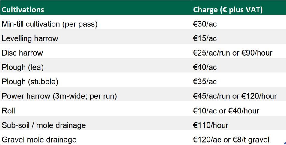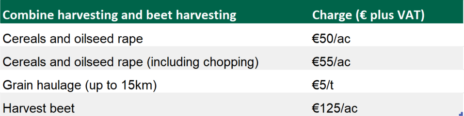 The FCI has released a lengthy table, detailing rates for a whole plethora of on-farm (machinery) services.
