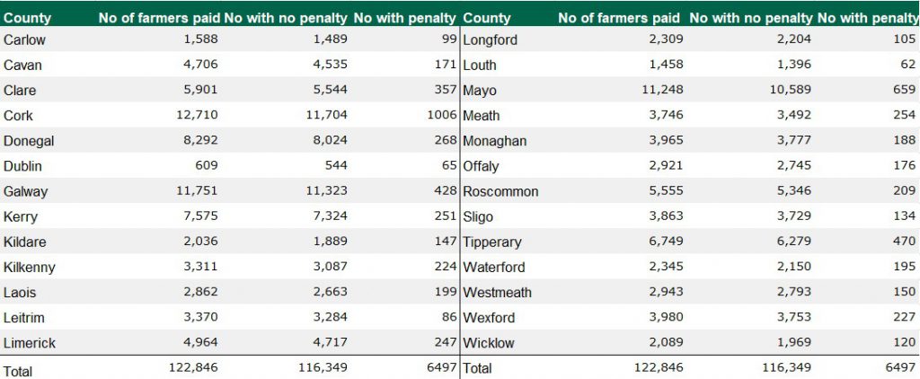 In response to a parliamentary question from Sinn Féin TD Matt Carthy on the matter last week, the minister provided a breakdown of how many farmers received a penalty, where such farmers were located and how much of a penalty they received.