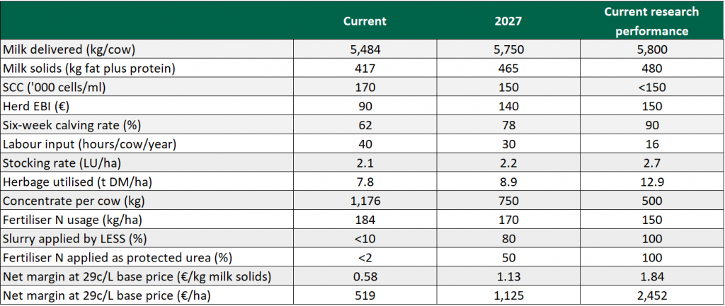 Teagasc has also outlined the expected production levels for 2027, with several key areas being targeted to increase production levels, while decreasing GHG emissions.