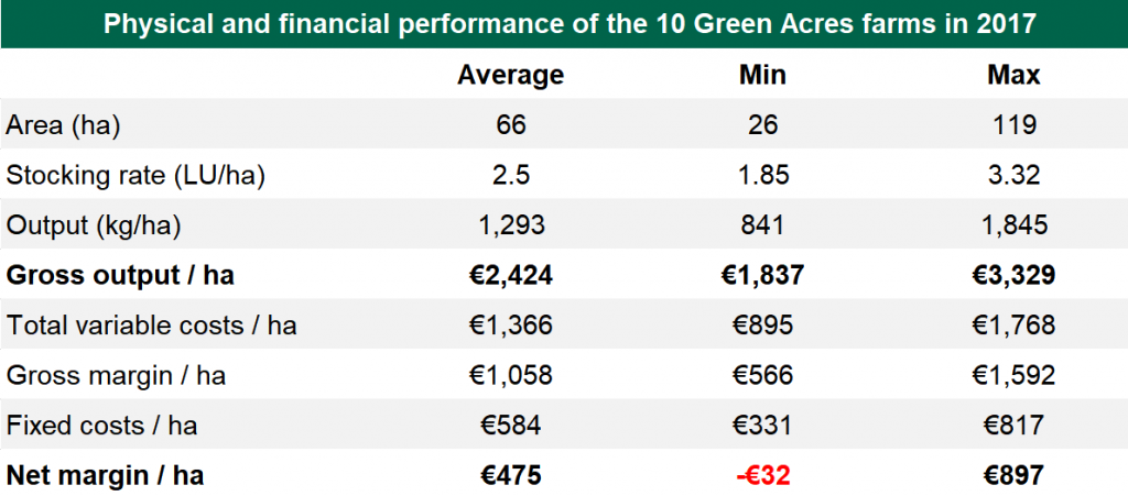 This was driven by the increase in beef output on the farms. The average fixed costs on the farms was €584 in 2017. This is very typical of non-breeding drystock farms, which generally range from €450 to €650/ha.