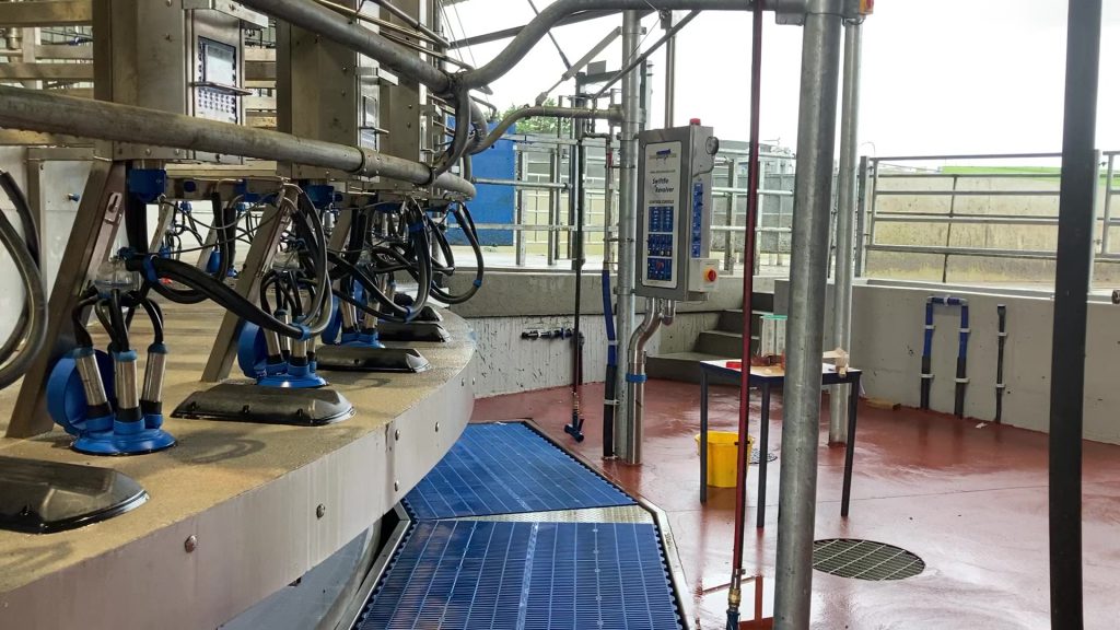 “Since then however we have moved into the new rotary parlour. It’s a 50-bail Dairymaster Swiftflo rotary parlour.