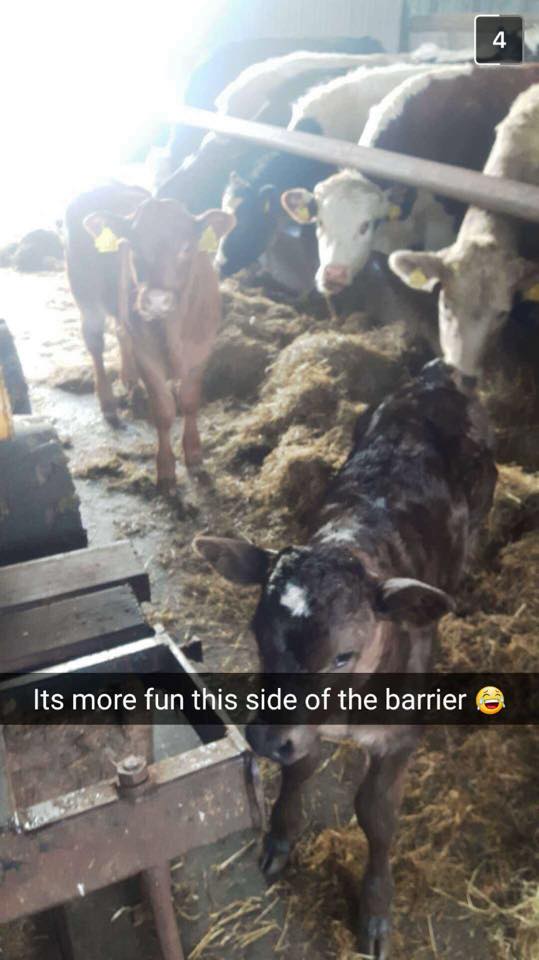 The farmer might make an effort to re-pen the offenders on their first few breakouts, but will then eventually give up as the calves sheer determination to grow up on the wrong side of the feeding barrier wins out.