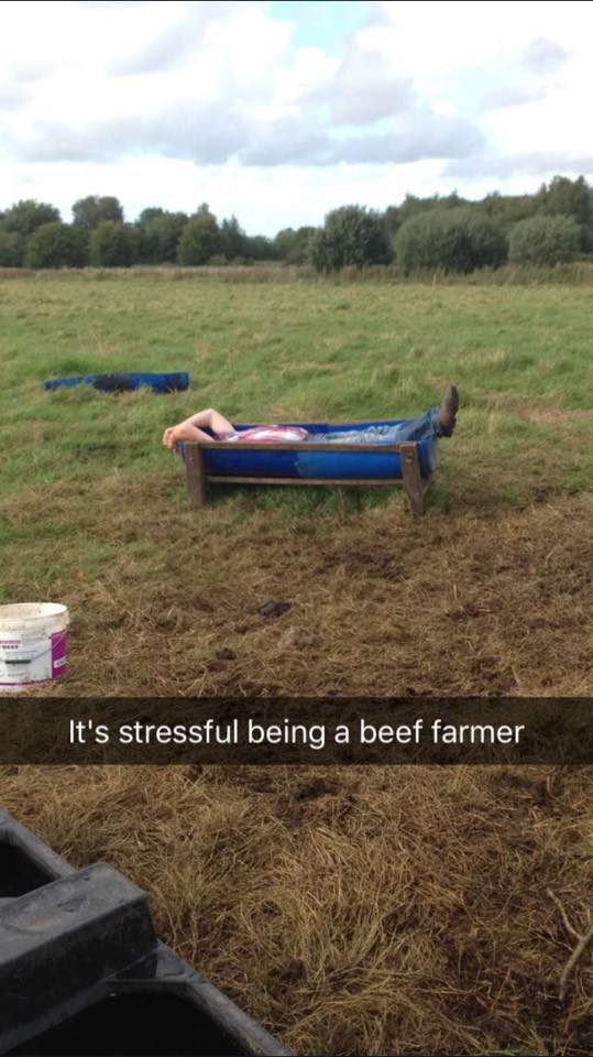 But this farmer decided to the make the most of where he was and take a quick rest in a cattle trough.