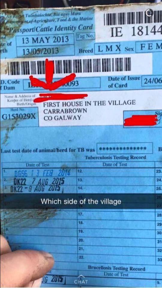 One of the most popular entries so far this year was a snap taken of an address on a cattle identity card.