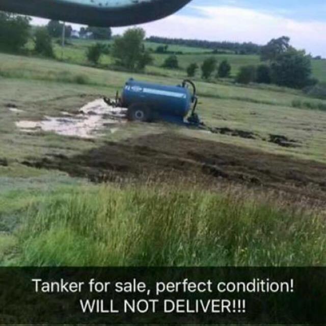 This farmers’ brave attempt at spreading on soft ground didn’t quite work out, so they decided to cut their losses. We wonder did they get any offers?