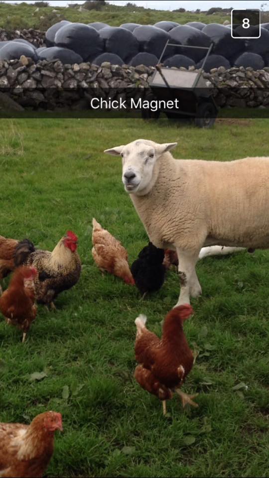 Sheep and chickens are not animals you would necessarily think would make good companions on the farm, but this ram seems to be getting on just fine with his new found friends.