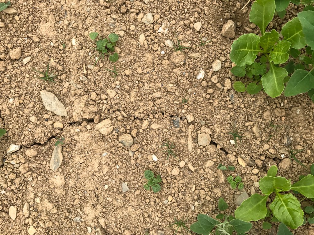 “I have beet and it’s okay. I sprayed it yesterday evening, but I couldn’t believe that there are cracks opening up in the clay. The beet is surviving, but it wants rain. It was sown in the middle of April.