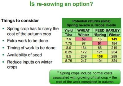 As tillage farmers look into sparse winter cereal crops, some will be faced with a decision on whether to re-sow or not.