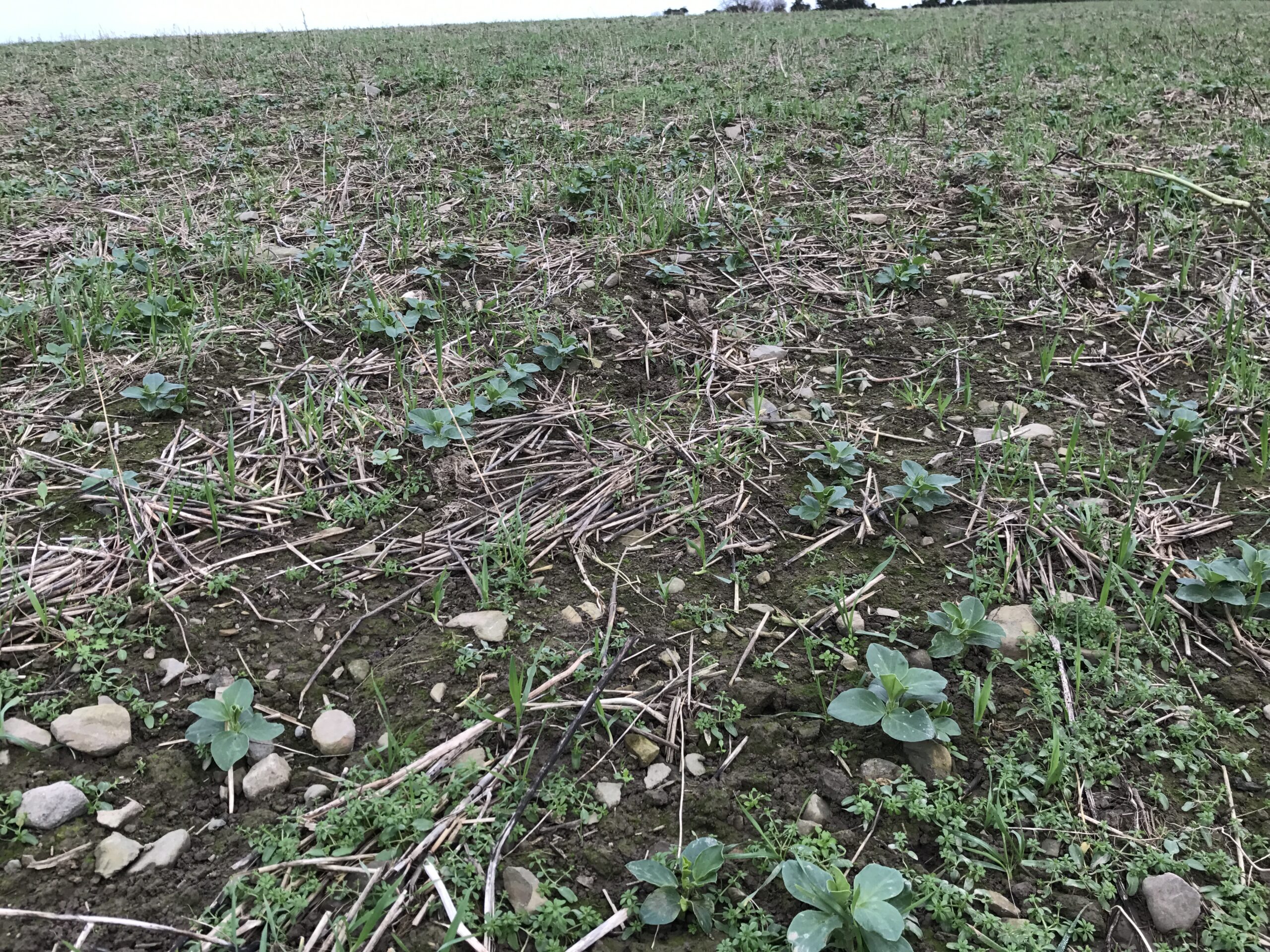 The field did not receive a pre-emergence spray. However, Gareth was planning to control the wheat and oats later in the season.