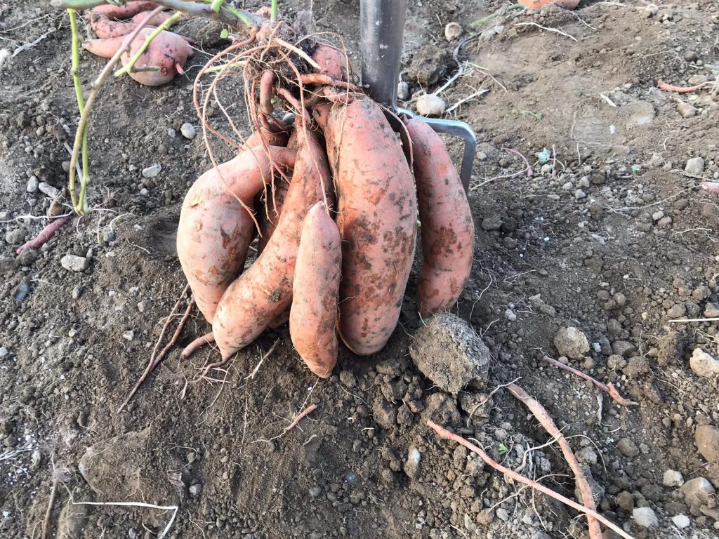 The crop was dug out manually at the end of October and during the early days of November. When grown on a large scale, sweet potatoes are dug using a chain digger.