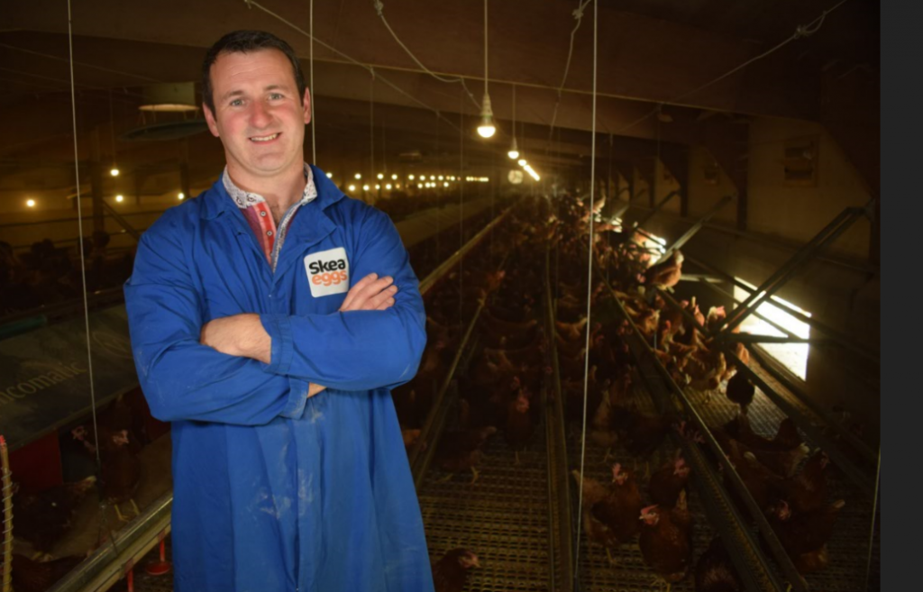 Jonathan farms 14,000 free range laying hens supplying Skea Eggs alongside his suckler herd on the family farm. He erected his first 6,000 bird shed in 2010 and has slowly extended his capacity to two houses with a central packing area.