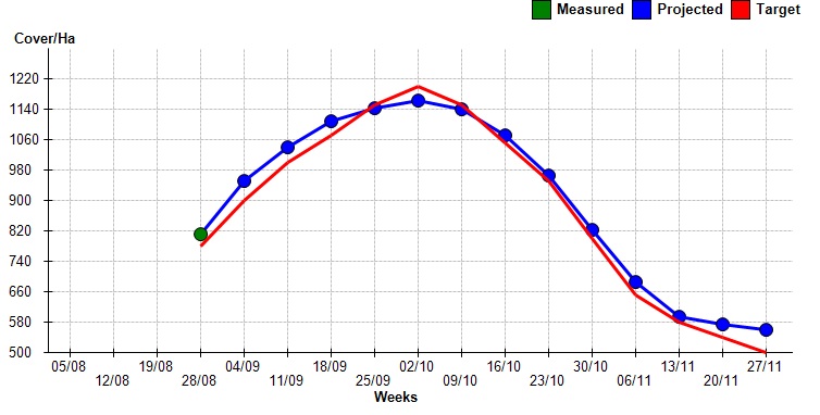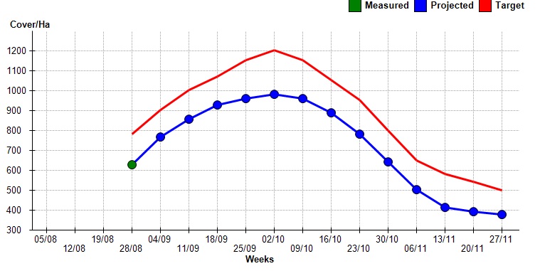 Target to have at least 400kgDM/lu by end of September/early October up to a limit of 1200 kgDM/ha.