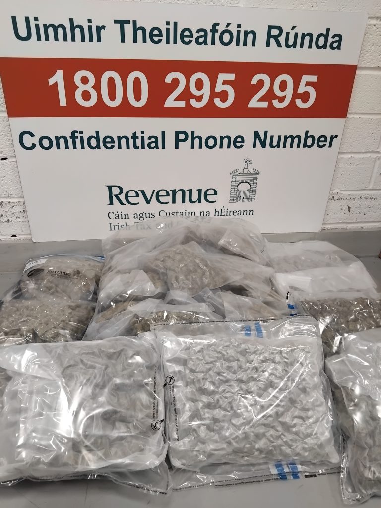 The herbal cannabis and other illicit drugs were discovered while Revenue officers, with the assistance of detector dogs Ciara, Grace and Sam, were examining parcels at premises in Dublin and the midlands.