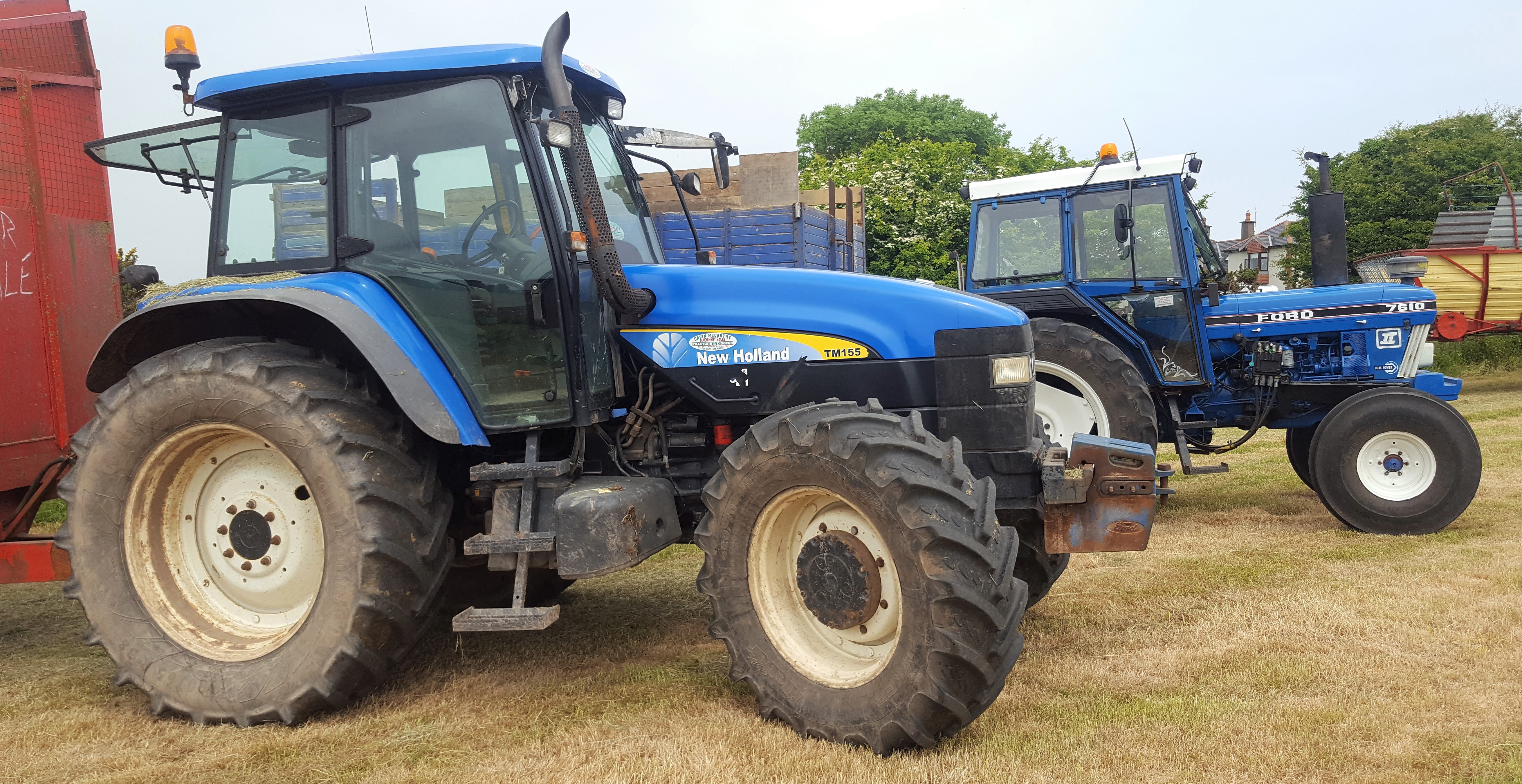 It’s shown here (below) alongside a much newer (but also ‘blue’) New Holland TM155 (owned by James Condon from Ballintotis, Co. Cork).