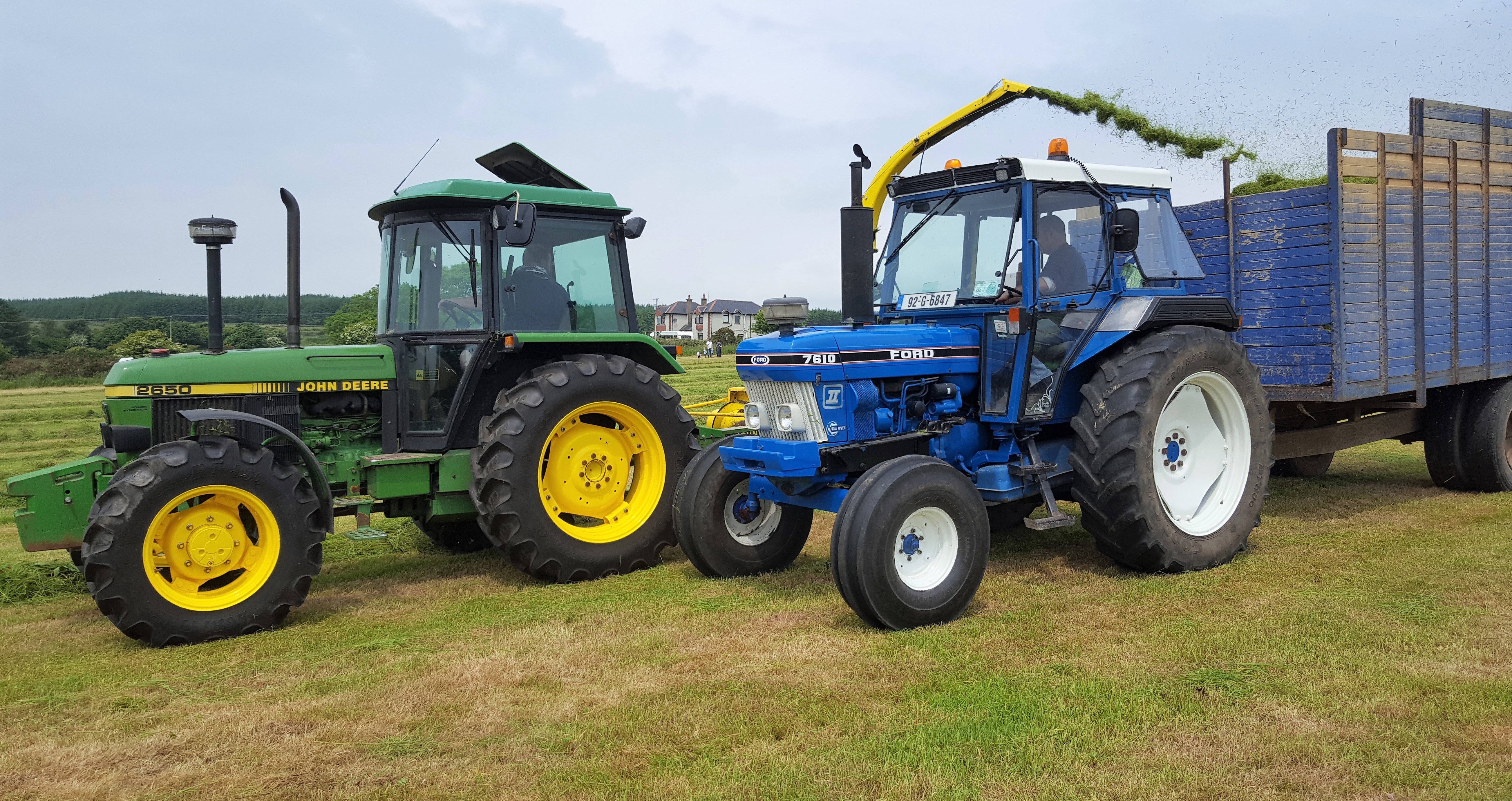 In this shot, we have two popular tractors (default choices for drawing silage for many contractors – each in its own era) side-by-side.