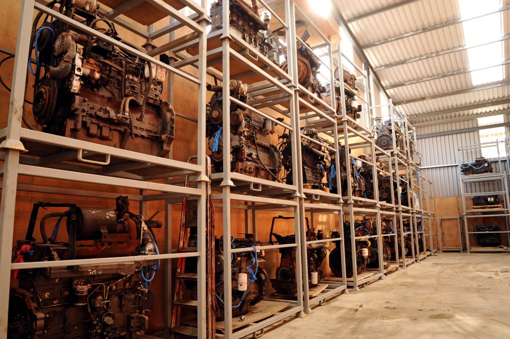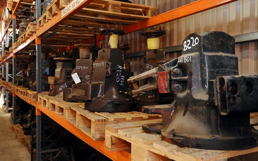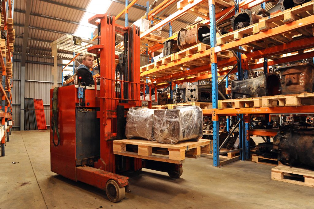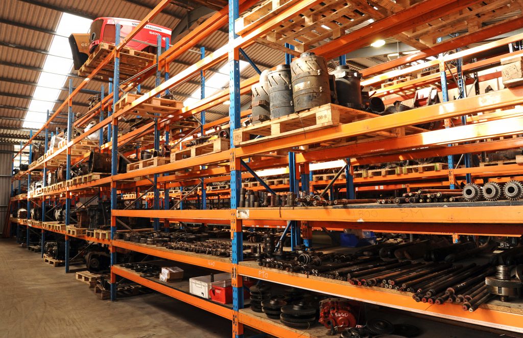 Once a tractor has been unloaded and drained of all fluids the job of dismantling can begin in earnest. As the parts come off the tractor they are marked with their part number and taken just a couple of hundred metres up to their new storage facility, which comprises a large warehouse decked out with racking.