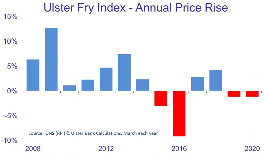 Commenting, Richard Ramsey said: “The Ulster Bank Ulster Fry Index is intended to be a way to engage consumers in economics and to help communicate what’s happening with indicators like inflation.