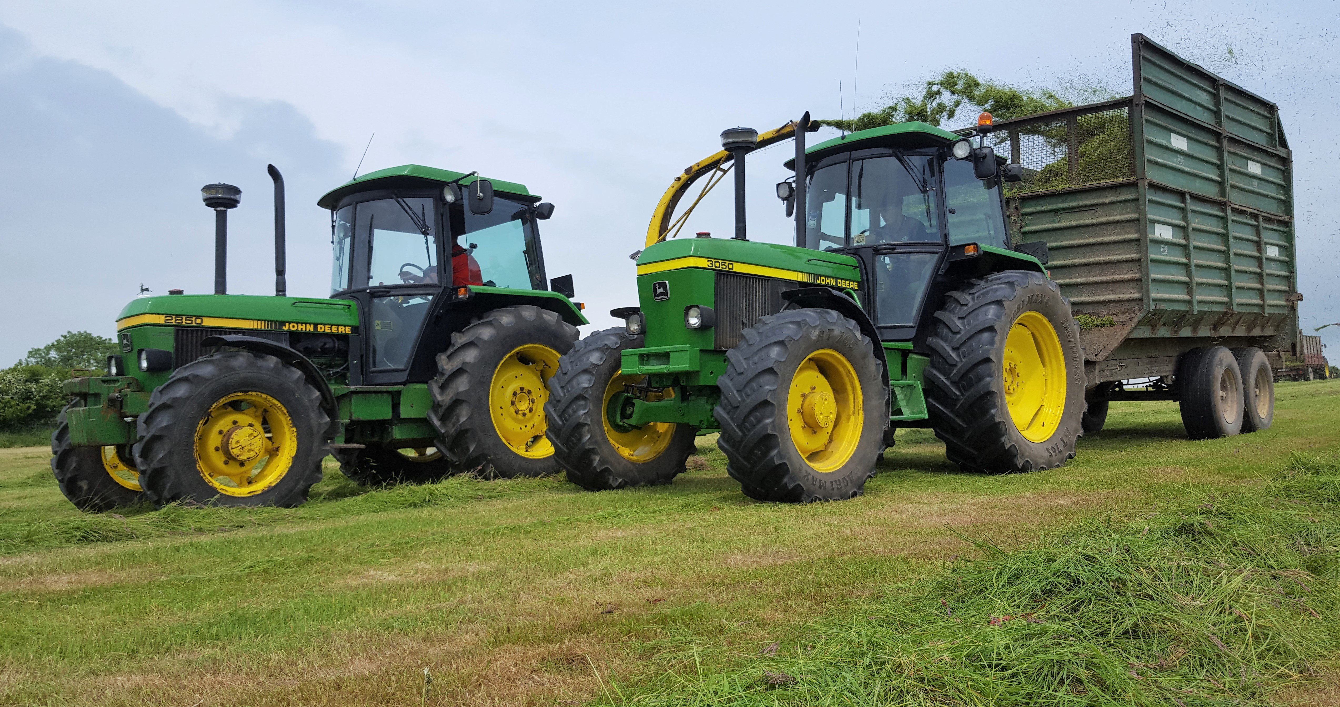 Pictured below, side-filling from the 4755 and SH40N combination is a nostalgia-inducing John Deere 3050 (2WD).