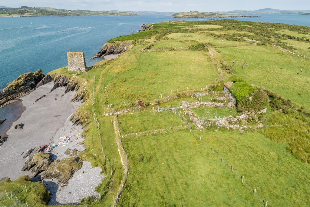 The ruins of the original three clusters of houses which made up the community are situated in three distinct locations; the first at the pier where the original O’Mahony castle stands and the other two at each end of the island.