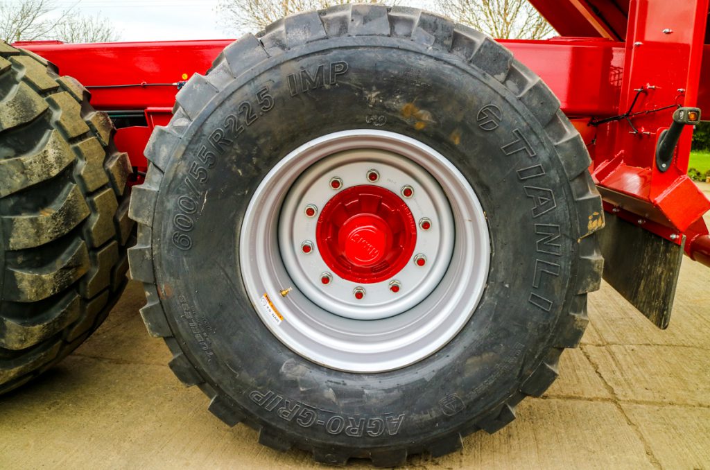 These axles can be hydraulically locked in the ‘straight ahead’ position – effectively turning off the steering system. This is needed, for example, when reversing. Mated to the axles are 600/55/22.5 low ground pressure tyres. These reduce soil compaction and also boost carrying capacity.