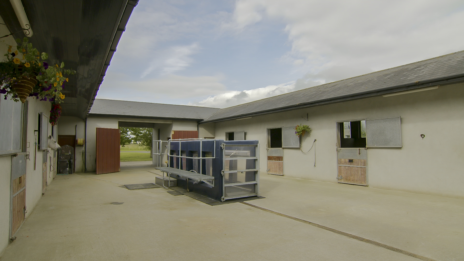 The stable yard comprises eight stables with an overhang, a tack room, a bathroom and a store room.