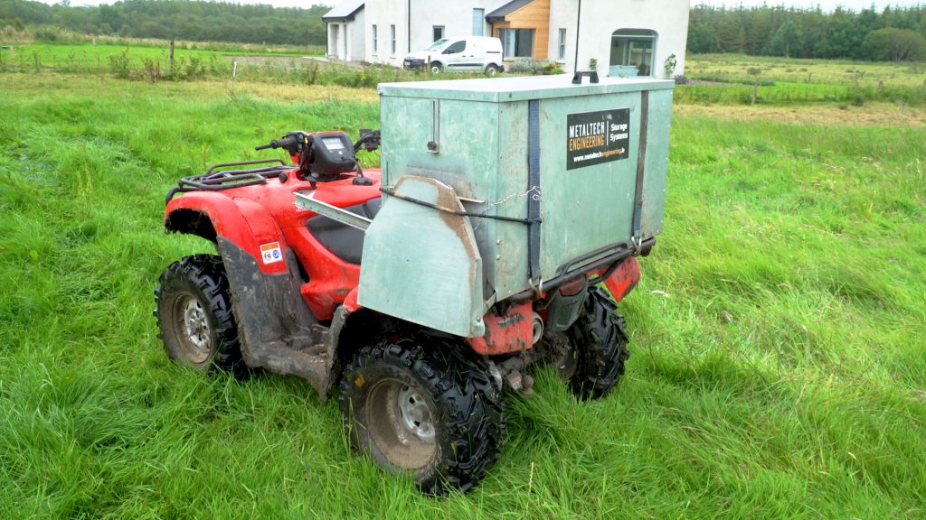 Tom came up with the idea after getting injured on the farm last year. The Co. Clare dairy farmer – who operates a spring-calving system – needed a way to transport feed around the farm that did not involve lifting bags of meal on and off the quad.
