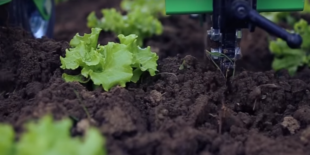 Dino is guided by RTK (real-time kinetic) GPS and cameras to mechanically weed and hoe vegetables, going in as close as possible without damaging the crop. Advertised as a ‘multi-functional straddling robot’, the contraption can also be used for sowing.