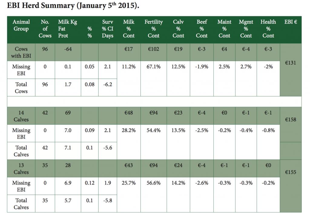 The heifers introduced to the herd this year (13 Calves in EBI Herd Summary) have similar genetic merit for fertility but higher milk production potential. See the herd of cows in the video.