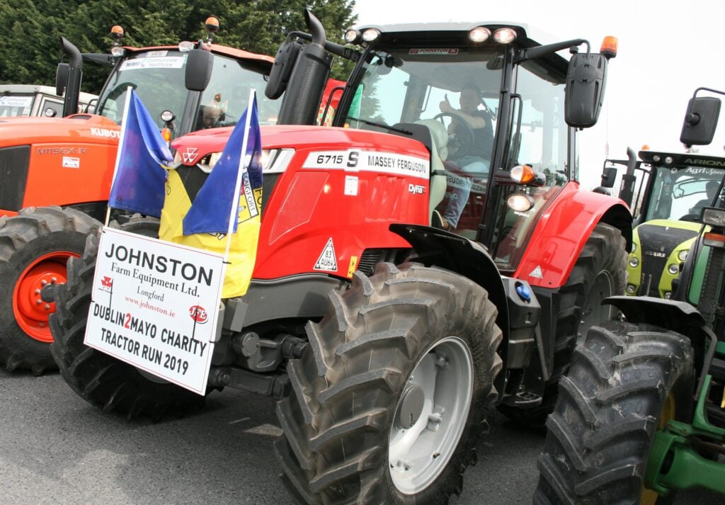 Next up, John spoke to Conor Creighton – the winner of a competition to determine who would drive a gleaming Massey Ferguson 6715 S (pictured below) on the two-day run. This machine was kindly supplied by Johnston Farm Equipment of Co. Longford.