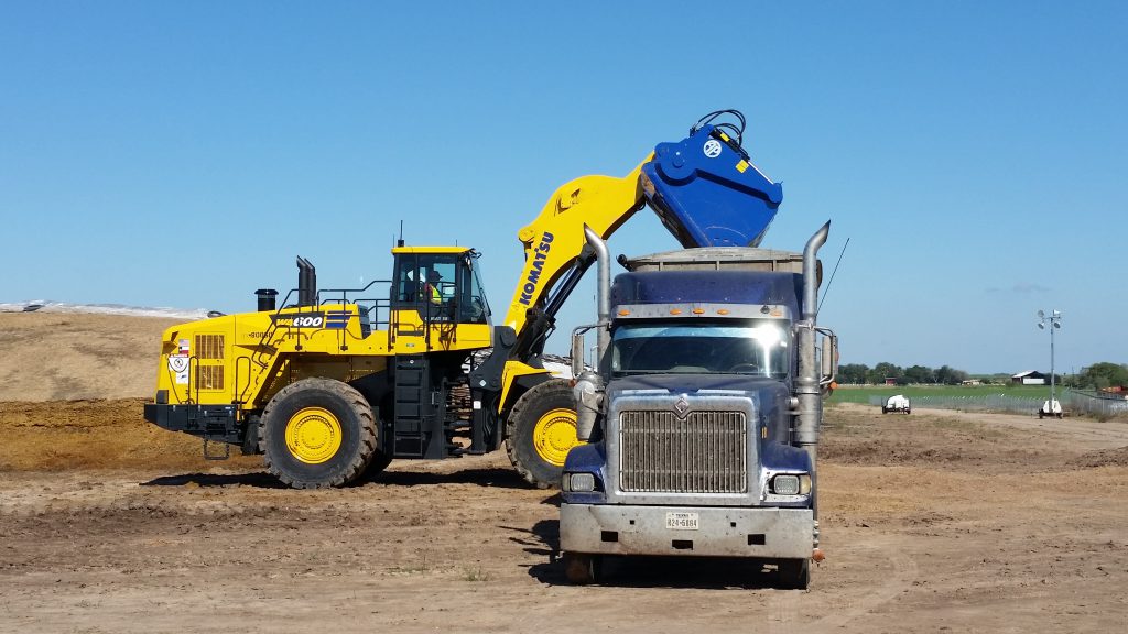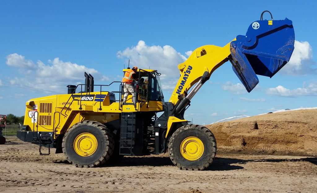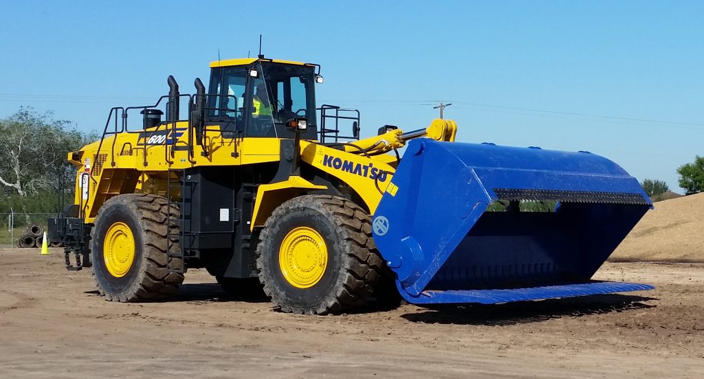 The attached pictures and videos show the unit being fabricated in AP’s factory and, later, on-site in Texas being used on the Komatsu loader.