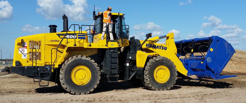 The first prototype unit is being used on a hefty Komatsu WA600 wheeled loader.