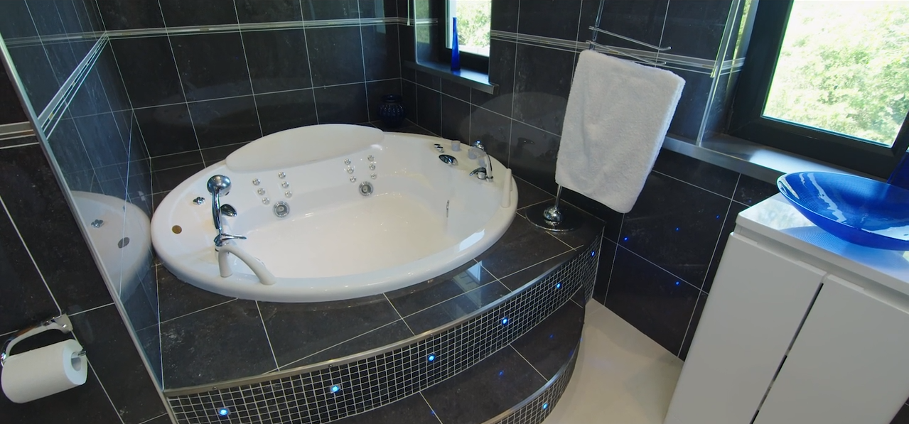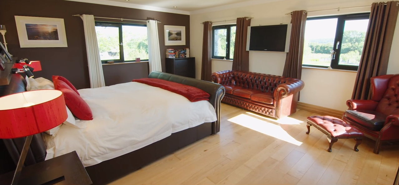 Upstairs comprises: a master bedroom with an en-suite wet room, a Jacuzzi bath and walk-in wardrobe; five further bedrooms – two of which are en-suite and one with a walk-in wardrobe; a family bathroom; and a laundry room.