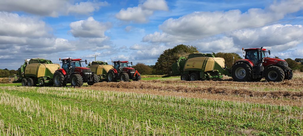 The fleet – comprising three Case IH tractors and Krone BiG Pack balers (plus another Case IH tractor coupled to a Heath Super Chaser) – was eye-catching to say the least.
