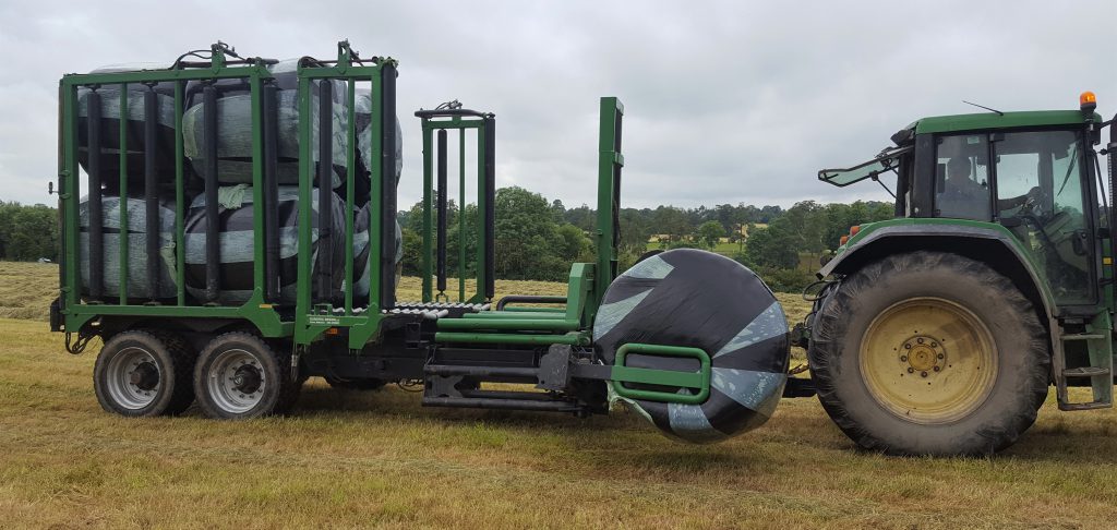 AgriLand paid a visit to Co. Kilkenny to meet a man who’s built his own self-loading bale transporter. The machine can ferry 16 (wrapped) round bales at a time.