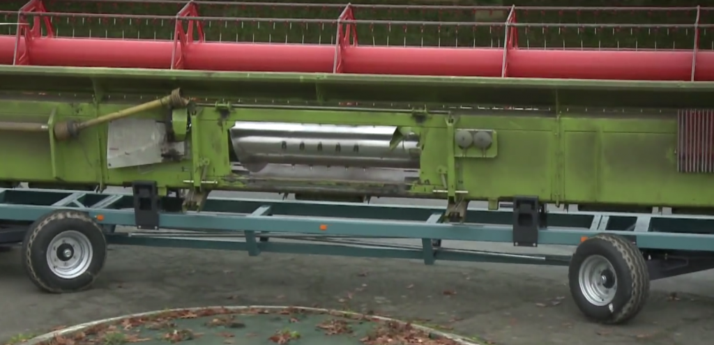 According to the manufacturer, the length of the combine trailer is the same as the width of the combine header and “doesn’t take up too much space”.