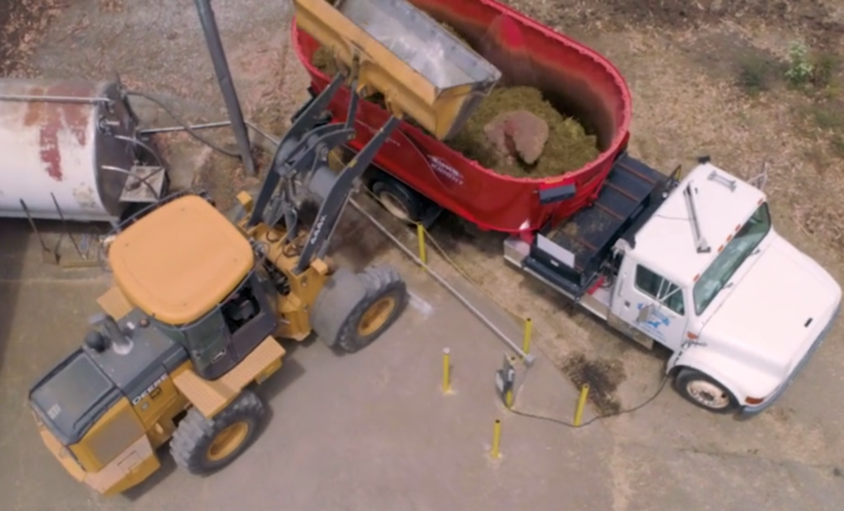 Claimed by its owner to be an environmentally-friendly alternative to diesel-fueled machines, the feed truck’s motor is charged from electricity generated from the methane gas produced by cows’ manure.