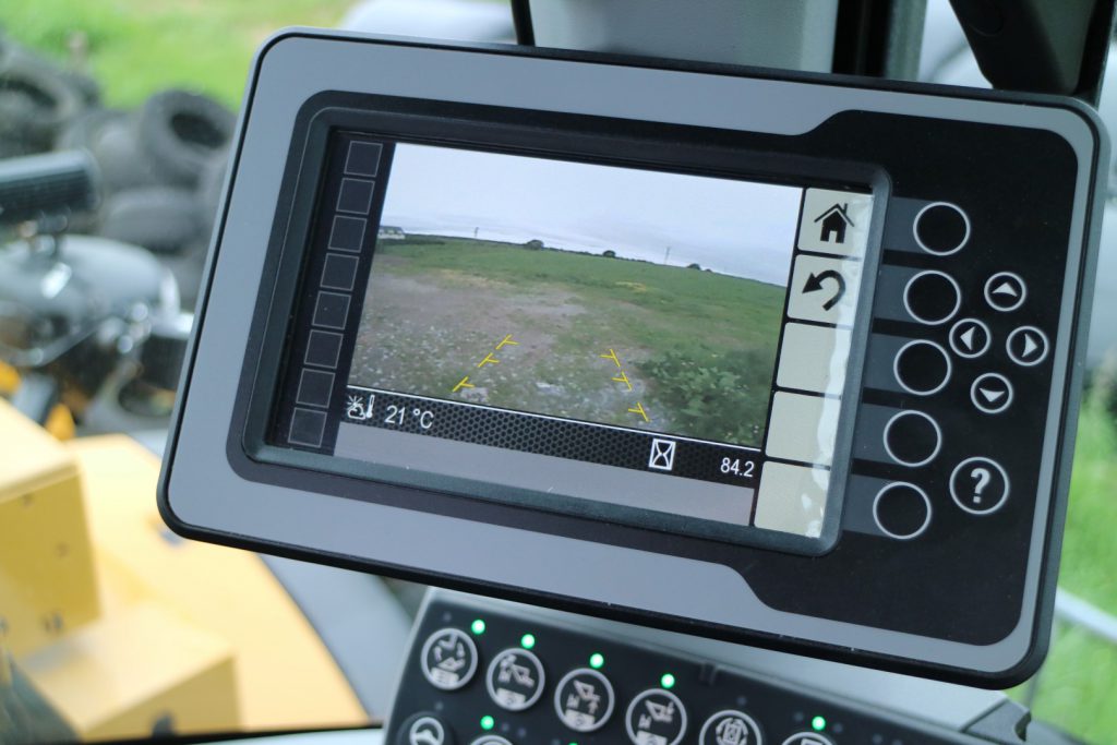 A choice of operating ‘modes’ allows the driver to choose between maximum fuel efficiency or boosted power (along with hydraulic speed) to get the optimum balance between overall efficiency and performance. On the day Agriland visited, the machine was able to push up a full 12ft fork of grass at an eerily-quiet 1,800rpm. This contrasts sharply with some competing shovels, which need to be revved close to 2,200rpm to do the same.