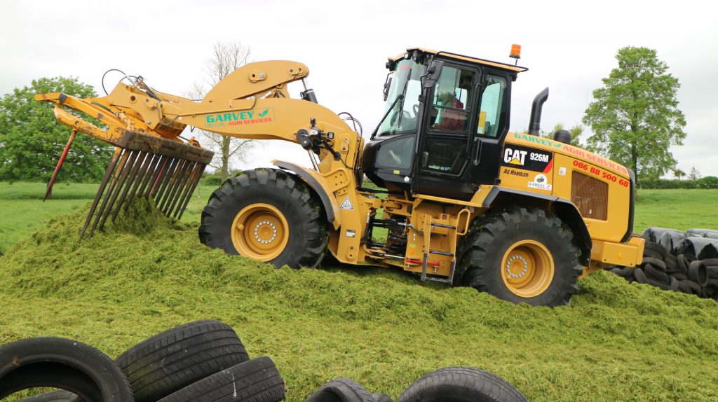 Clare-based contractor Tom Garvey was one of two contractors on the island of Ireland to make the change and opt for a new CAT loader for the pit this silage season. Garvey took delivery of a new CAT 926M ‘Ag Handler’, which replaced a Volvo L90. The L90 had previously replaced a JCB 434S.